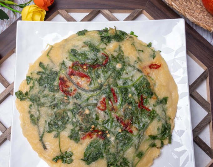 - 달군 팬에 기름을 두르고 반죽을 얇게 펴서 노릇하게 부쳐주면 완성입니다.