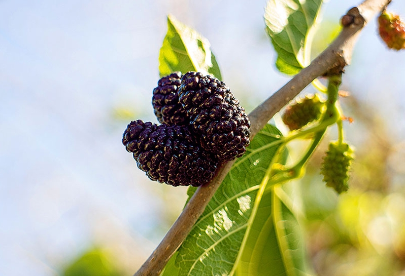 오디는 과학적으로는 뽕나무(Morus alba)의 열매로, 동의보감이나 본초강목 같은 고서에도 기록되어 있을 만큼 오랜 세월 동안 약용 열매로 인식되어 왔습니다. 예전에는 뽕잎을 누에에게 먹이기 위한 용도로 뽕나무를 키웠지만, 그 과정에서 얻는 오디 역시 마을 사람들의 소중한 간식이자 건강식이었지요. 과일로만 보기엔 뭔가 더 있는, 그런 묘한 포지션의 열매예요. 익은 오디는 크기에 따라 짙은 보라색부터 거의 검정에 가까운 빛을 띠고, 너무 오래 익으면 으깨지기 쉬워서 따기도 까다롭습니다.
